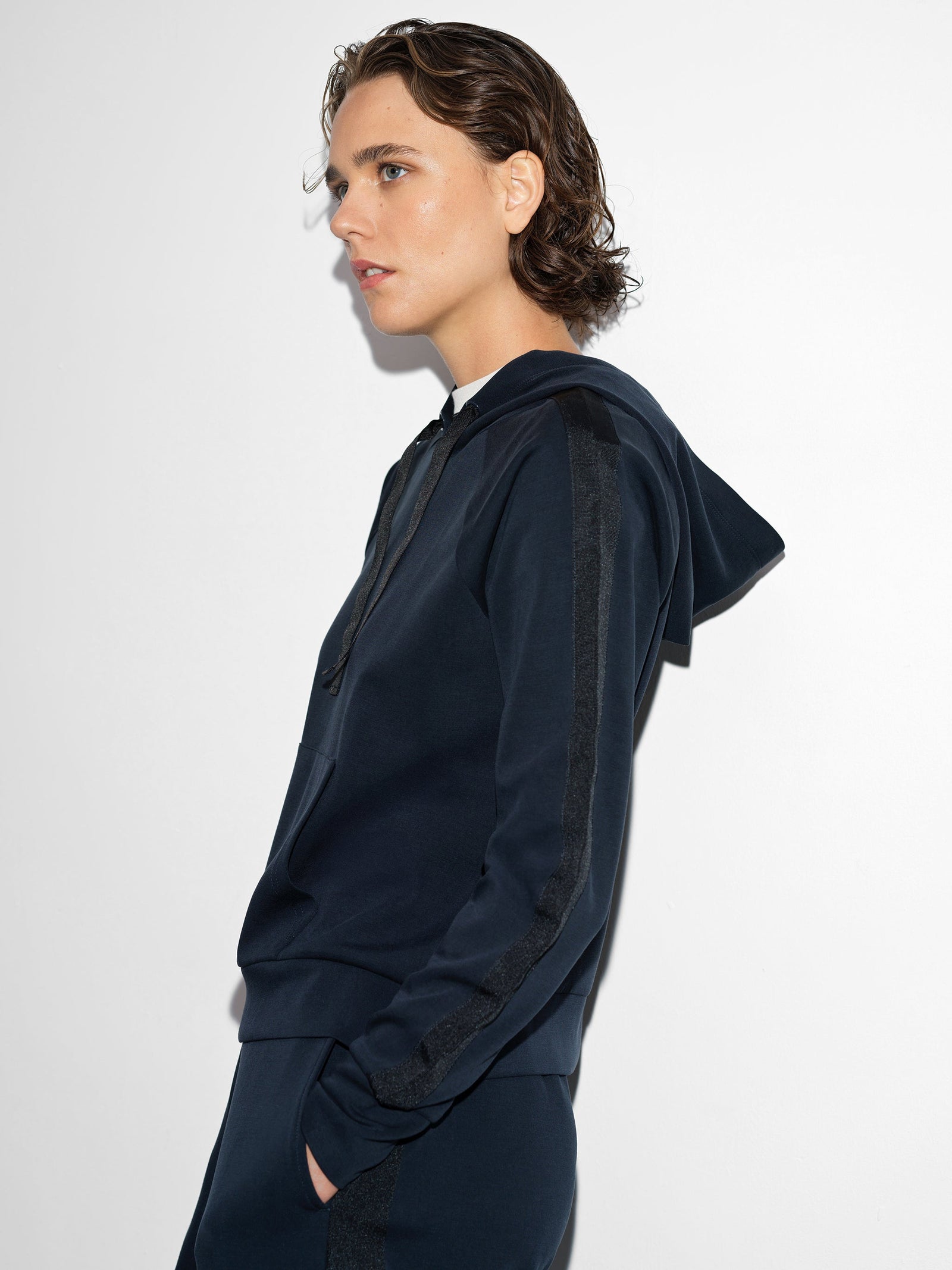 - Fabric: sumptuously soft, smooth, dark blue and black