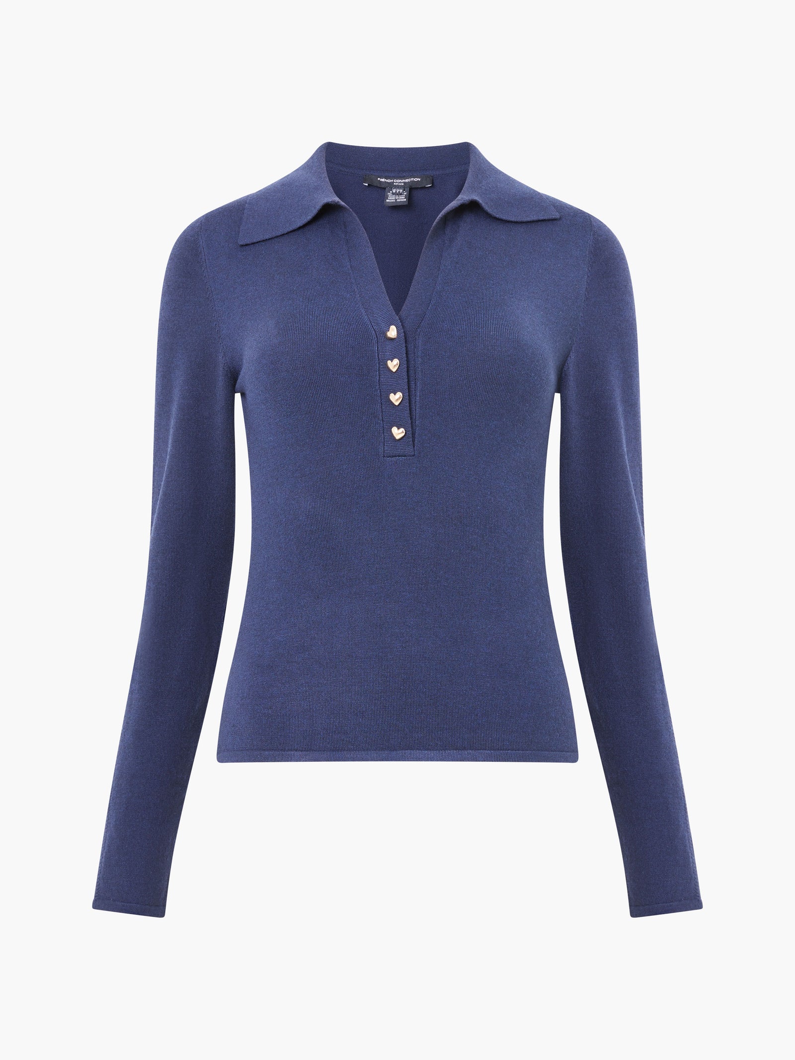 This v neck polo top is such a smart style with its long sleeves and collar. The gold tone heart shaped faux buttons finish this top to perfection.