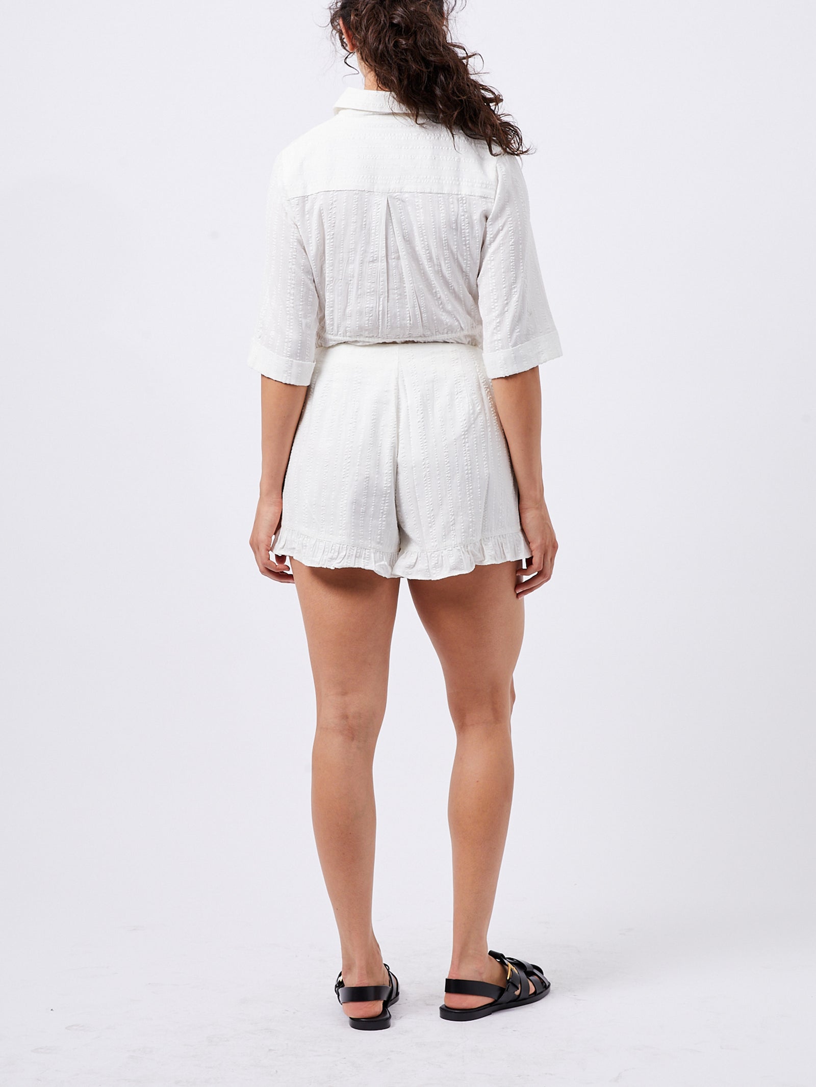 This pretty cotton embroidered shirt combines sophistication with effortless style. Delicate embroidery on front of shirt with a small collar and button fastening. The drawstring waist creates a flattering shape.