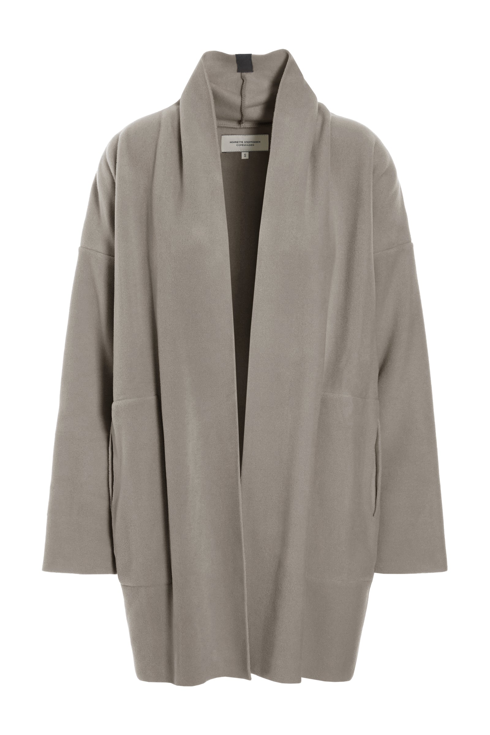 It features a shawl collar, practical pockets, and the signature grosgrain band that reflects the DNA of Henriette Steffensen Copenhagen.