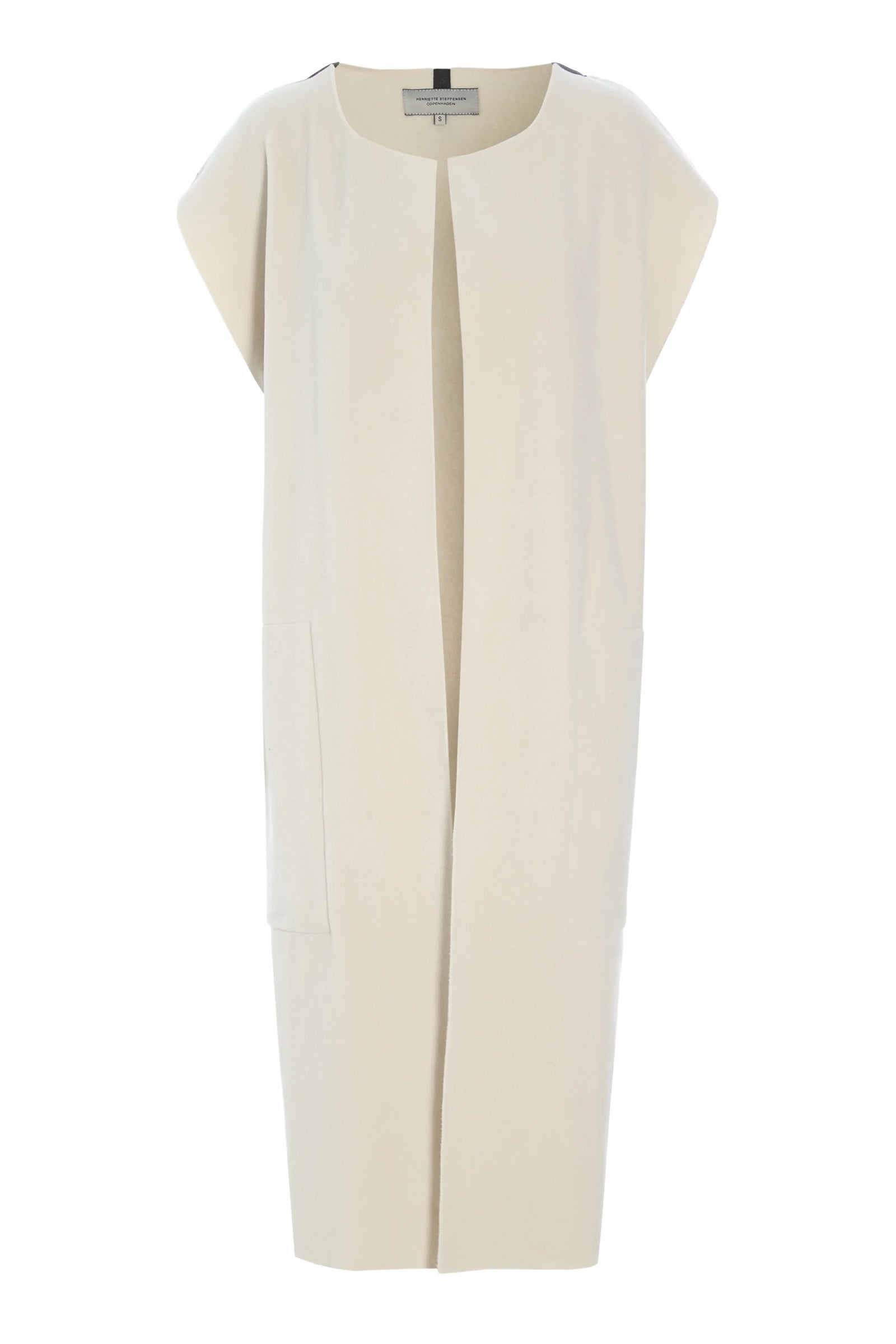 Long vest in a loose fit with large pockets, side slits and large arm openings which makes it possible to style with a sweater on top.