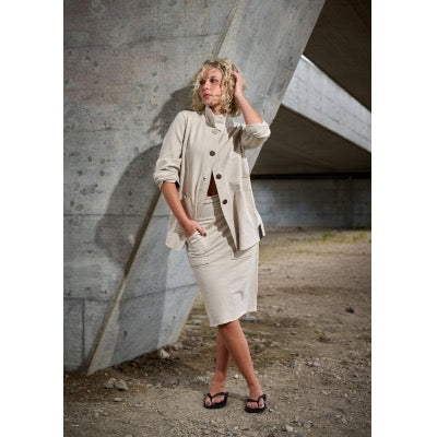 Long cardigan with a big cozy collar and nice deep pockets with details. Leave it hanging loose or wear it with a belt for a more feminine touch. In between season you can use is as a light jacket. Suitable for pants but also over a dress or a tight skirt.