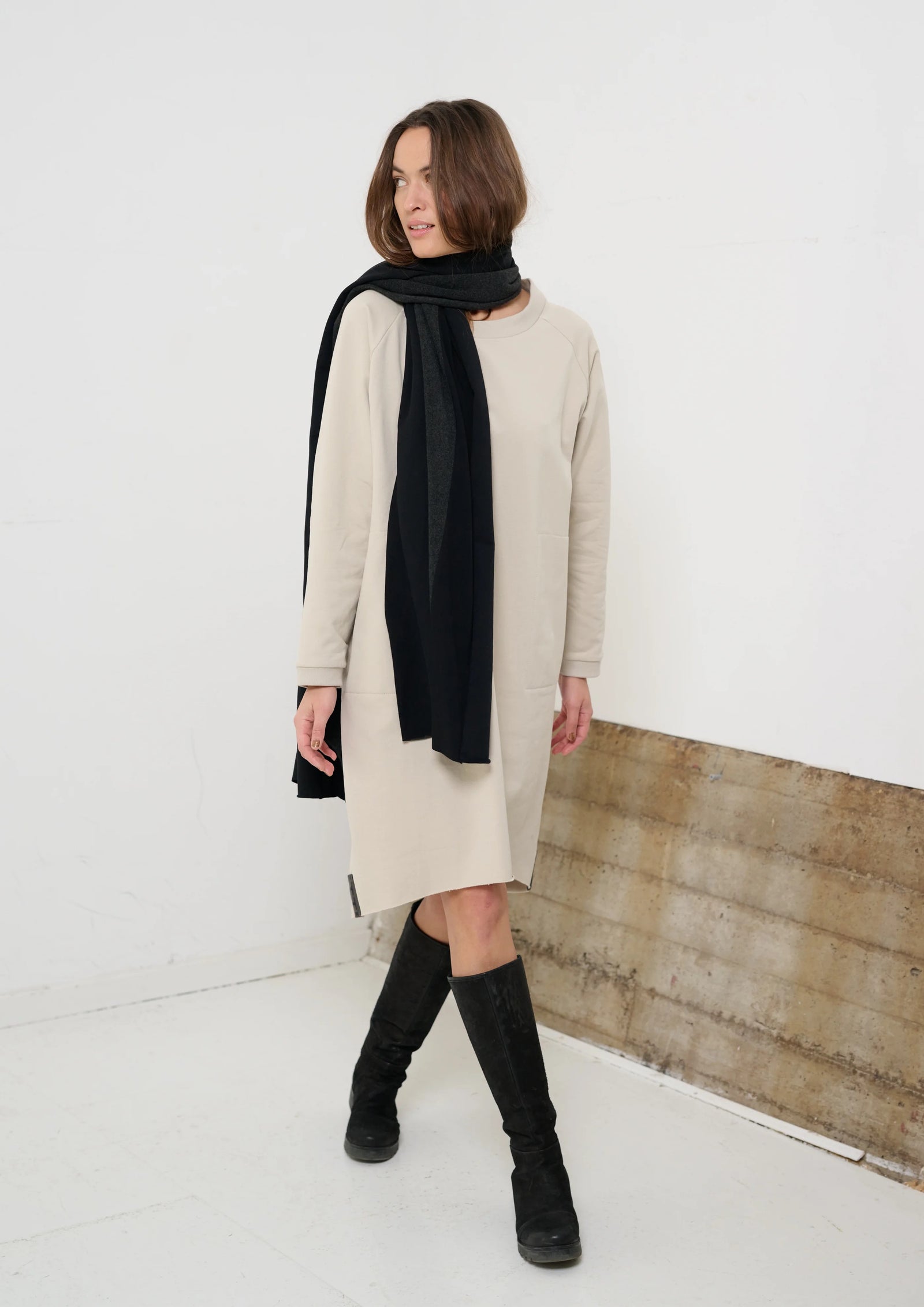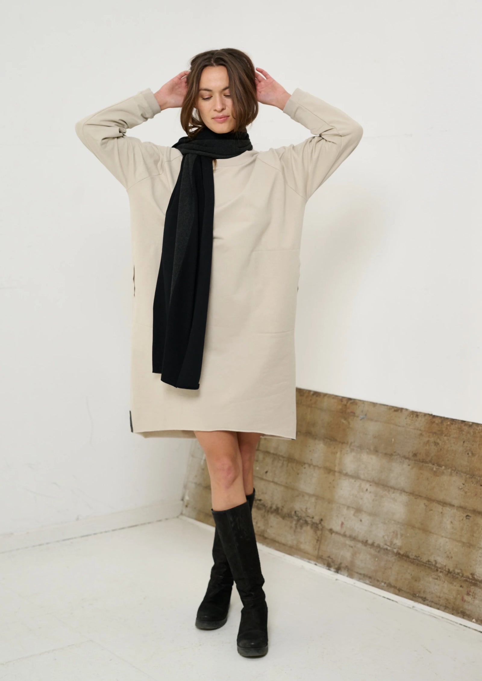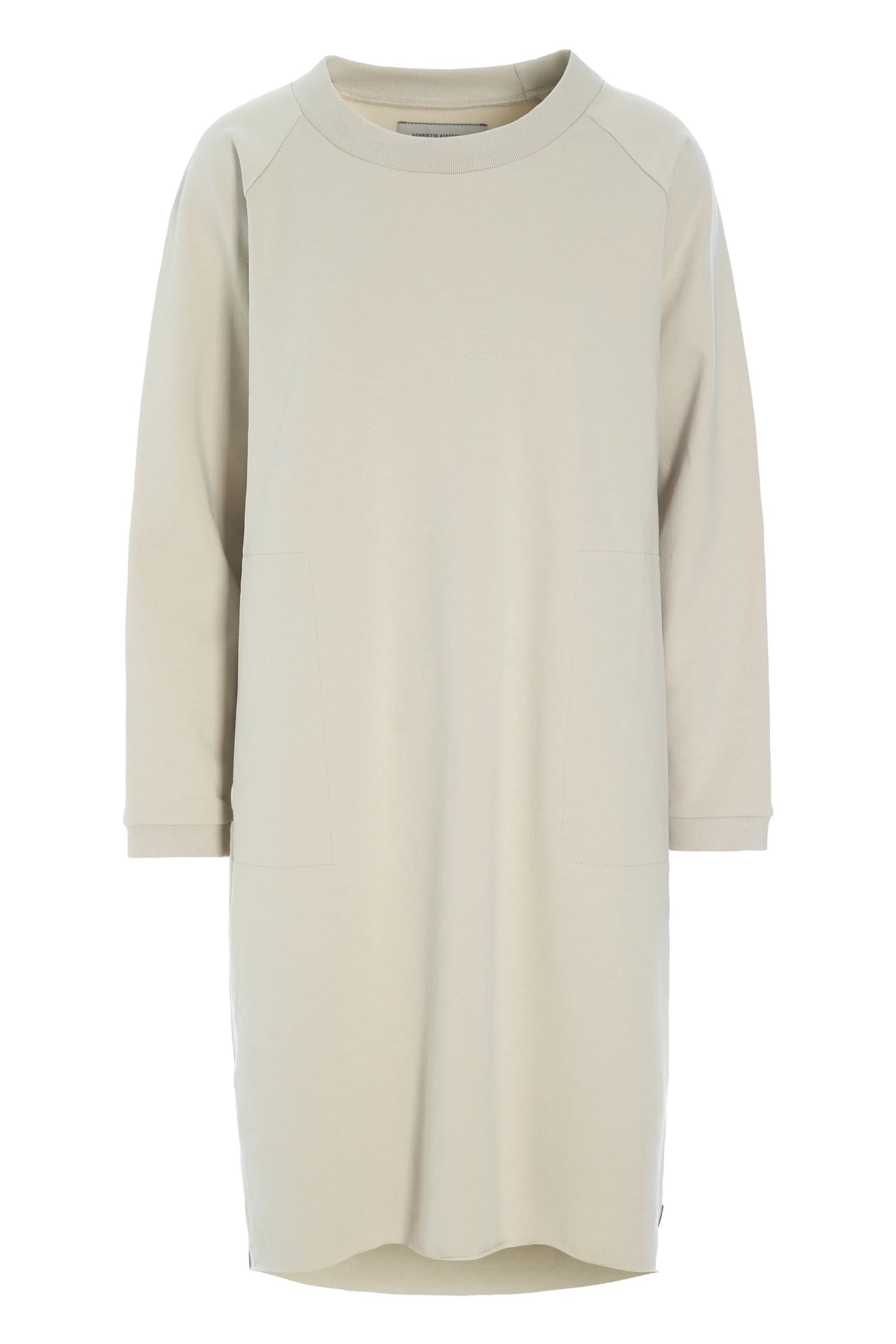 Boxy dress with raglan sleeves and logo-band on the back. The raw edges give a nice contrast to the dress. This dress will be a must-have in your wardrobe.