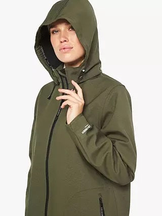 A feminine and functional raincoat in a flattering and comfortable a-shaped silhouette. Style is made of breathable soft shell material and body length is just below the knee. The style features a detachable hood, slits in side seams with press buttons, button closure at arm wrist, Ilse Jacobsen Hornbaek reflective logo on left sleeve and a YKK 2-way Aqua Guard zipper along center front and at pockets. This functional material resists water pressure up to 5000 mm. On top of the fabric we added an Ecorepel water and dirt repellant coating to ensure your garment a long life. All seams are taped.