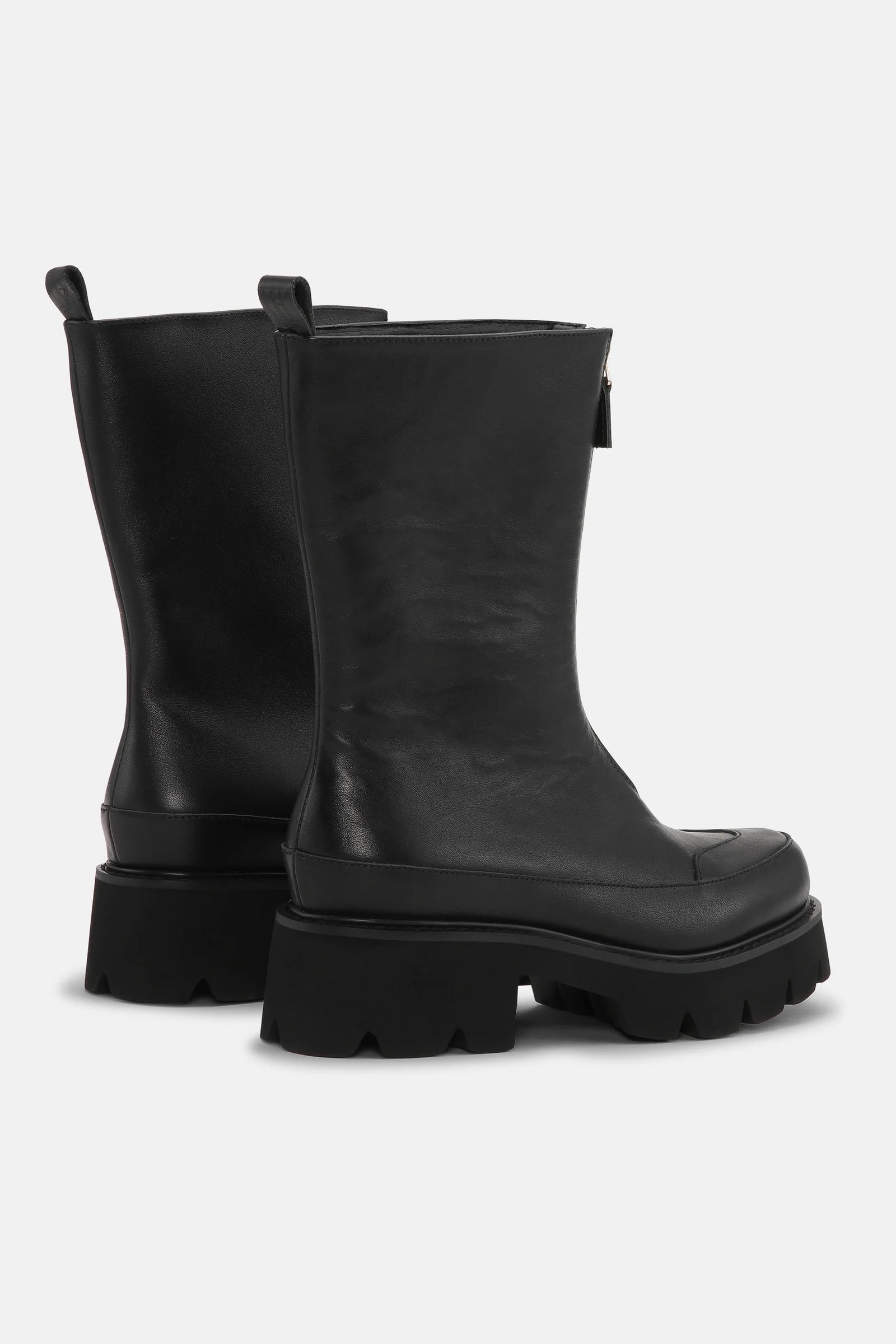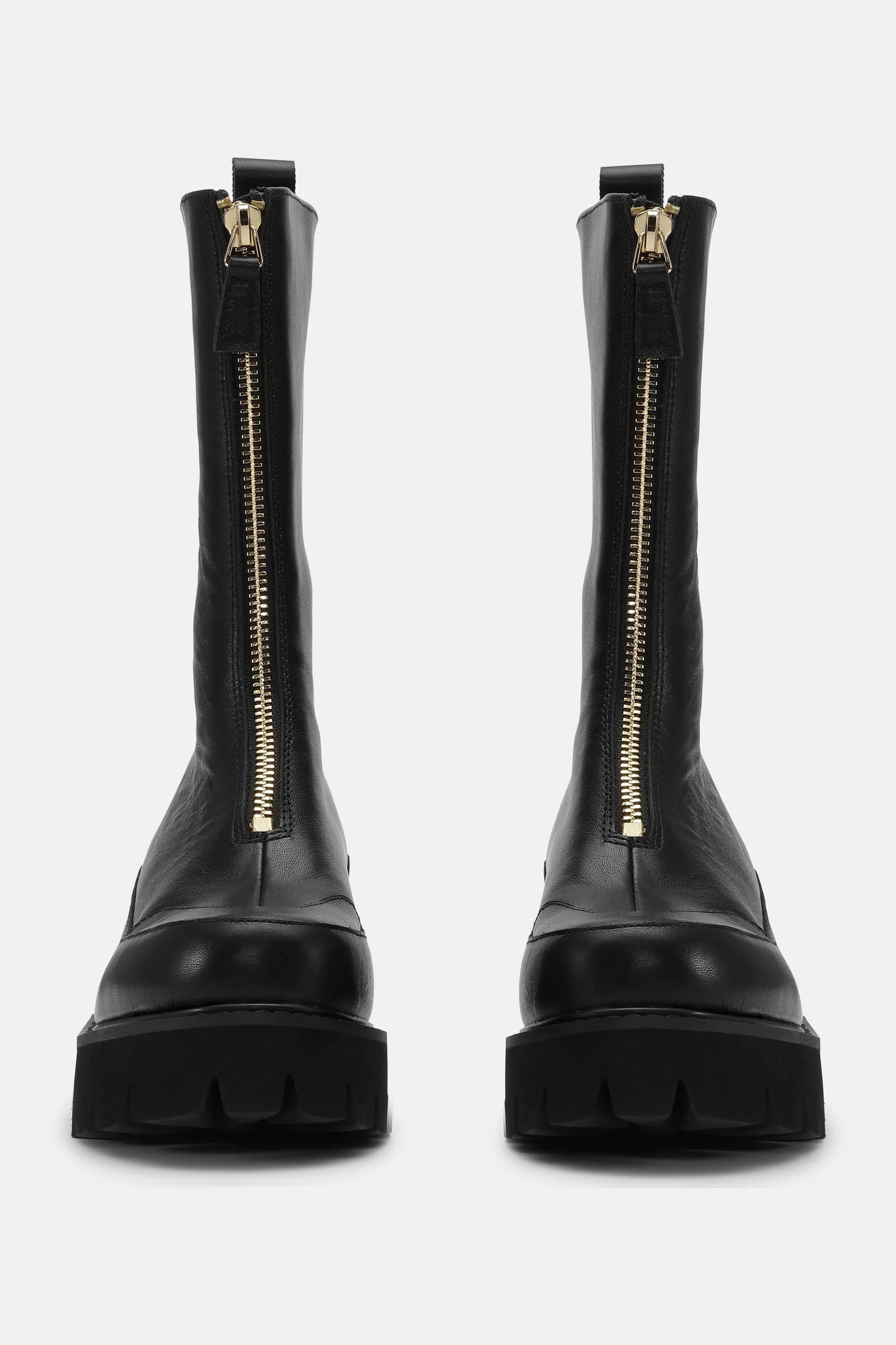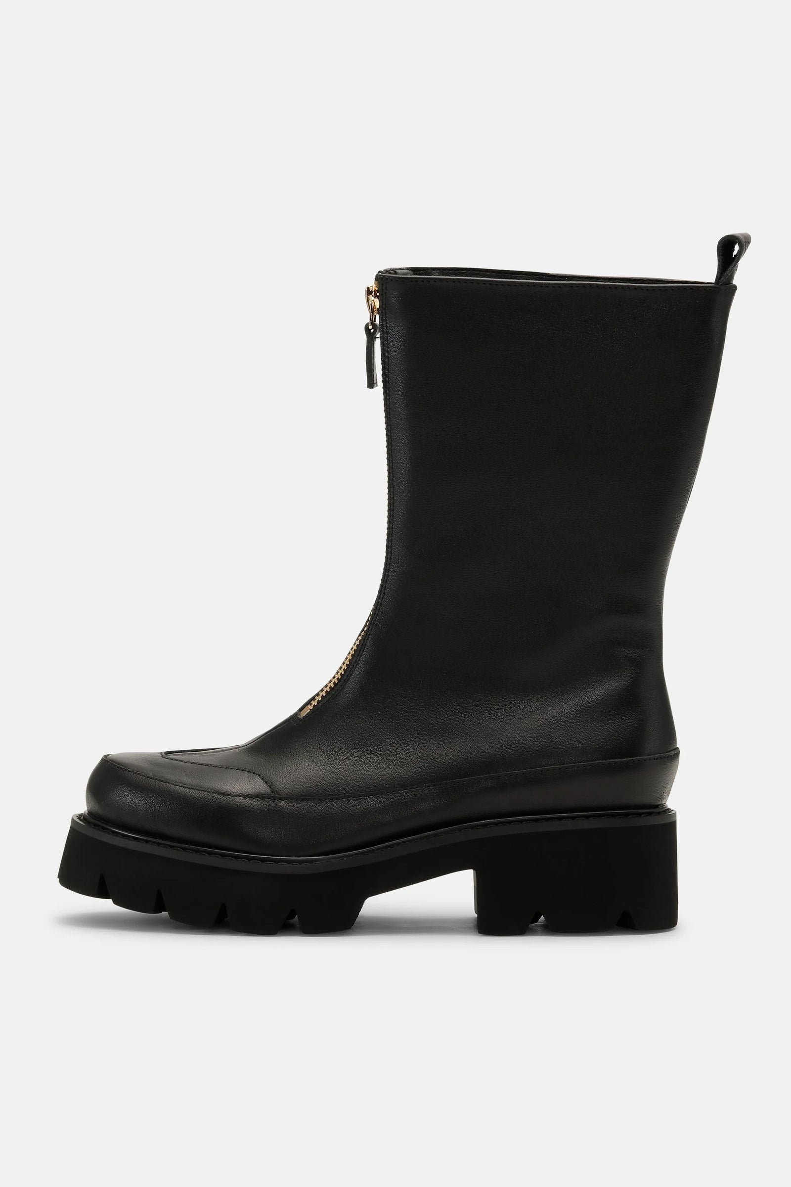 Loving these leather boots from ILSE JACOBSEN! They are calf length with a front metal zipper for easy access. There is an ornamental strap on the top edge which is just for style only. The sole is rugged which provides decent grip in any weather.