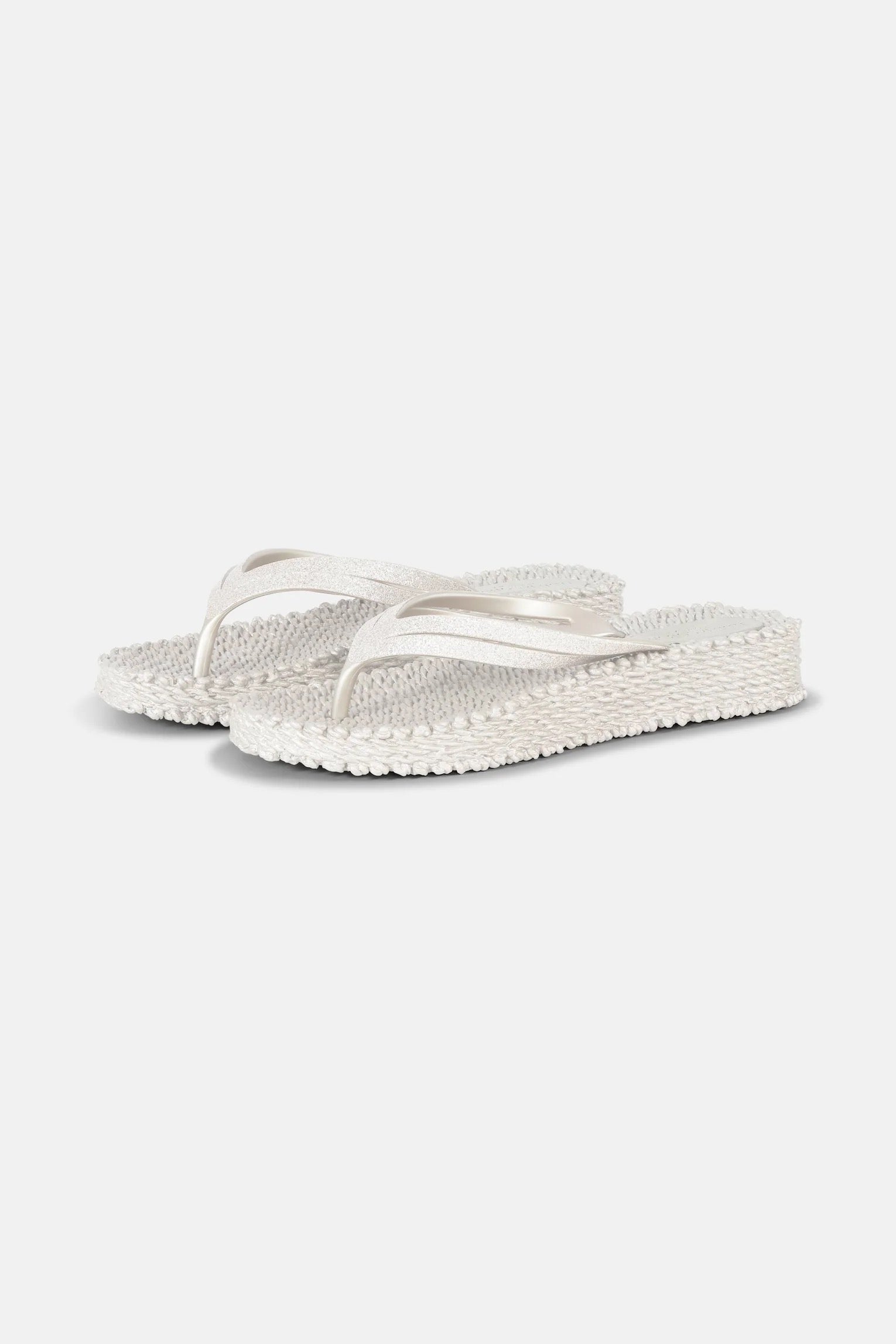 ILSE JACOBSEN cheerful13 cream glitter wedge flip-flops