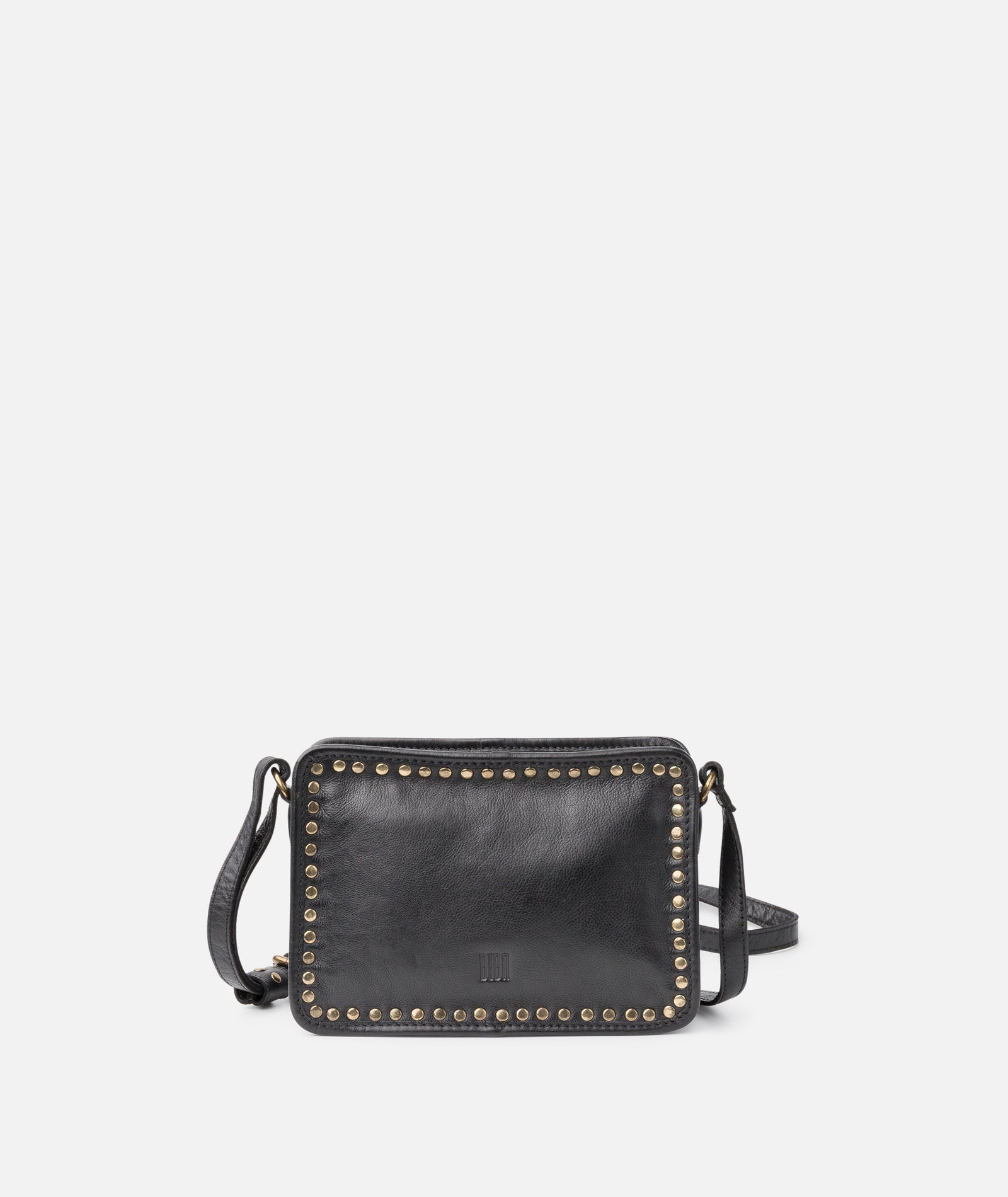 Washed cowhide shoulder bag. Two compartments with zipper closure. Adjustable shoulder strap. Multiple external and internal pockets. Cotton lining.