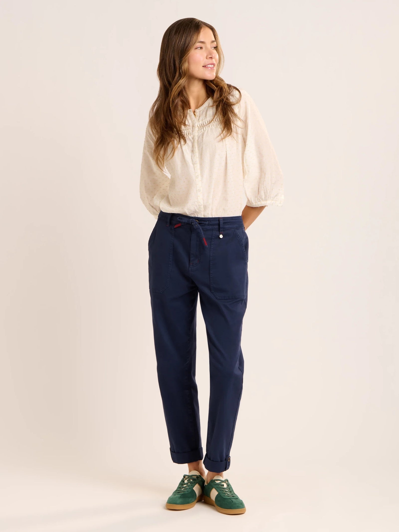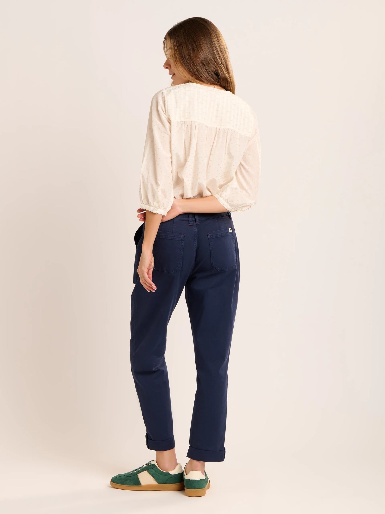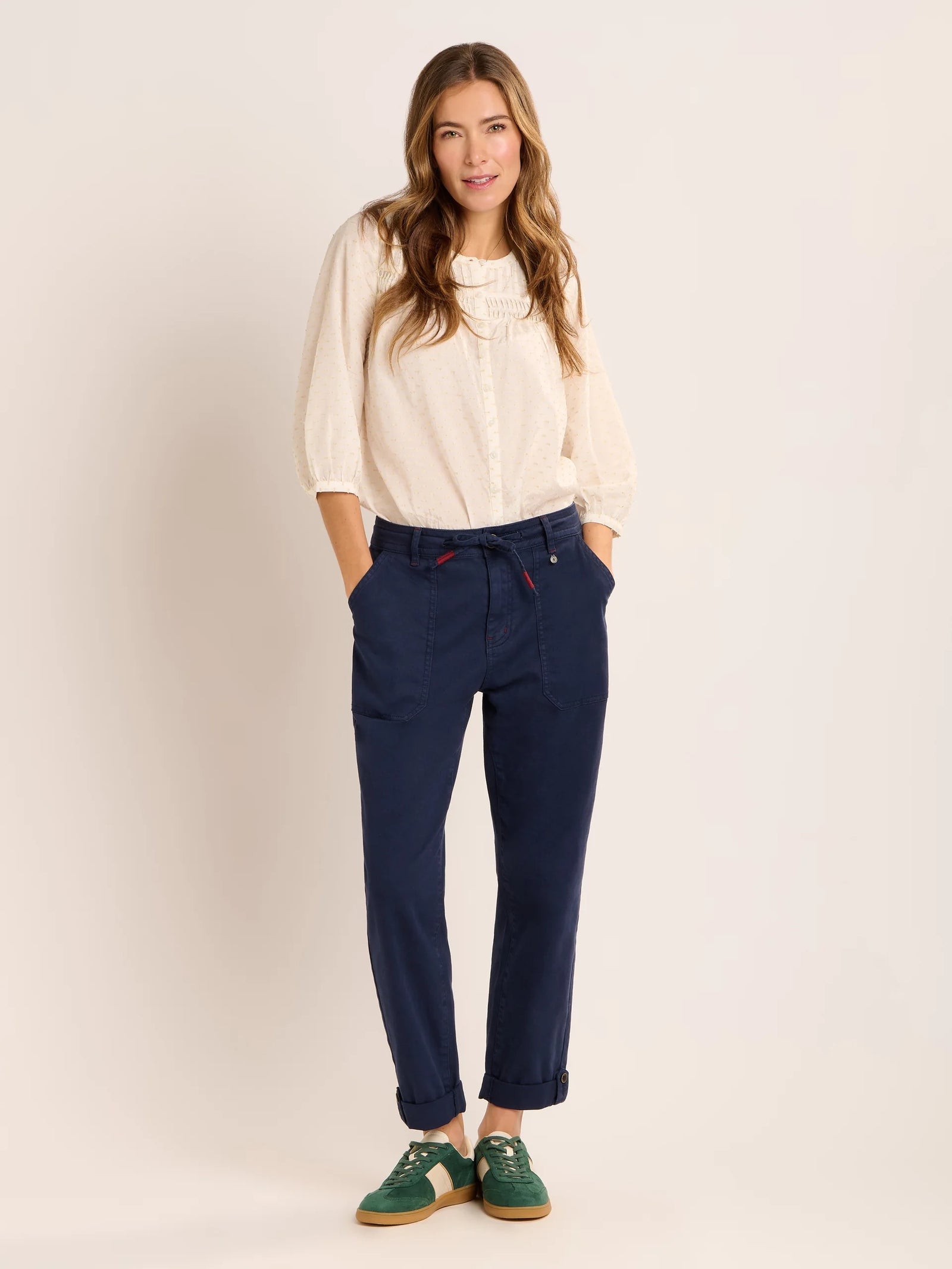 A timeless favourite, our Boardwalk blouse features delicate dobby fabric, cuffed 3/4 sleeves, button front placket and pin tuck detailing, it’s lightweight, breathable, and perfect for warmer days. Pair it with denim or our Blake trousers.