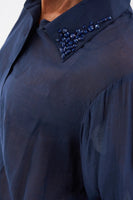Chris Bead Shirt is a sophisticated sheer shirt with an elevated twist. Designed in a lightweight fabric with subtle texture and fluid drape, it features a relaxed silhouette and classic button-down front. The standout detail? A pointed collar embellished with tonal beads for a refined yet statement-making look.
