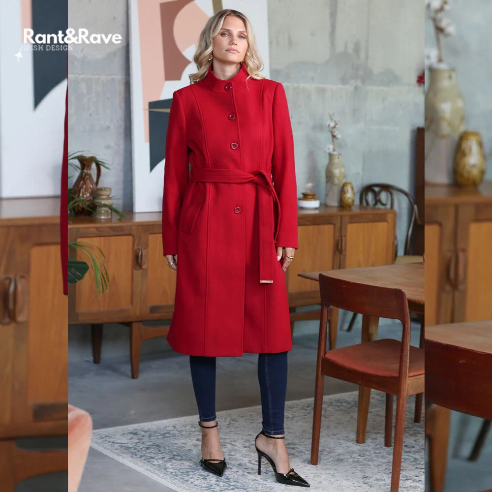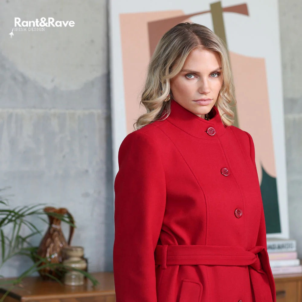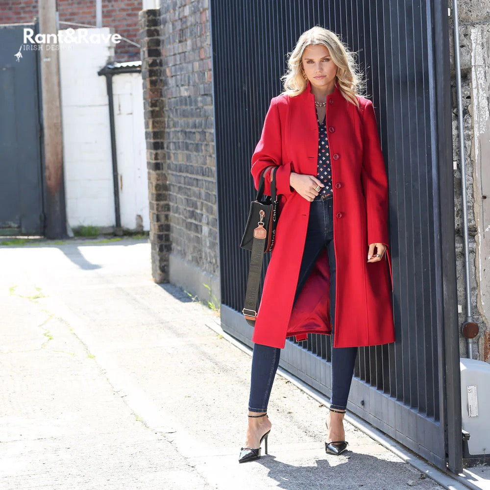 Rant & Rave Amanda Coat in a stunning red. This chic coat combines style and warmth, featuring a tailored fit that flatters every silhouette. The vibrant colour adds a pop of personality to any outfit, making it perfect for both casual outings and special occasions.