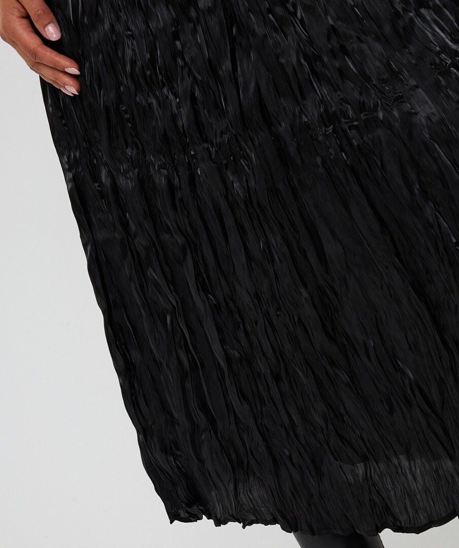 Chic shiny pleated skirt with playful texture in changeant fabric. The skirt has an elastic waistband and is lined with 100% viscose. Model is 1.73m and wears size S.