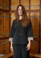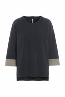 This top is comfortable, soft, warm, and easy to wear. The box shape leaves plenty of room to move around, and the soft fleece material drapes the body in a flattering way. The different colour on the cuffs give this a point of style and adds to the top.