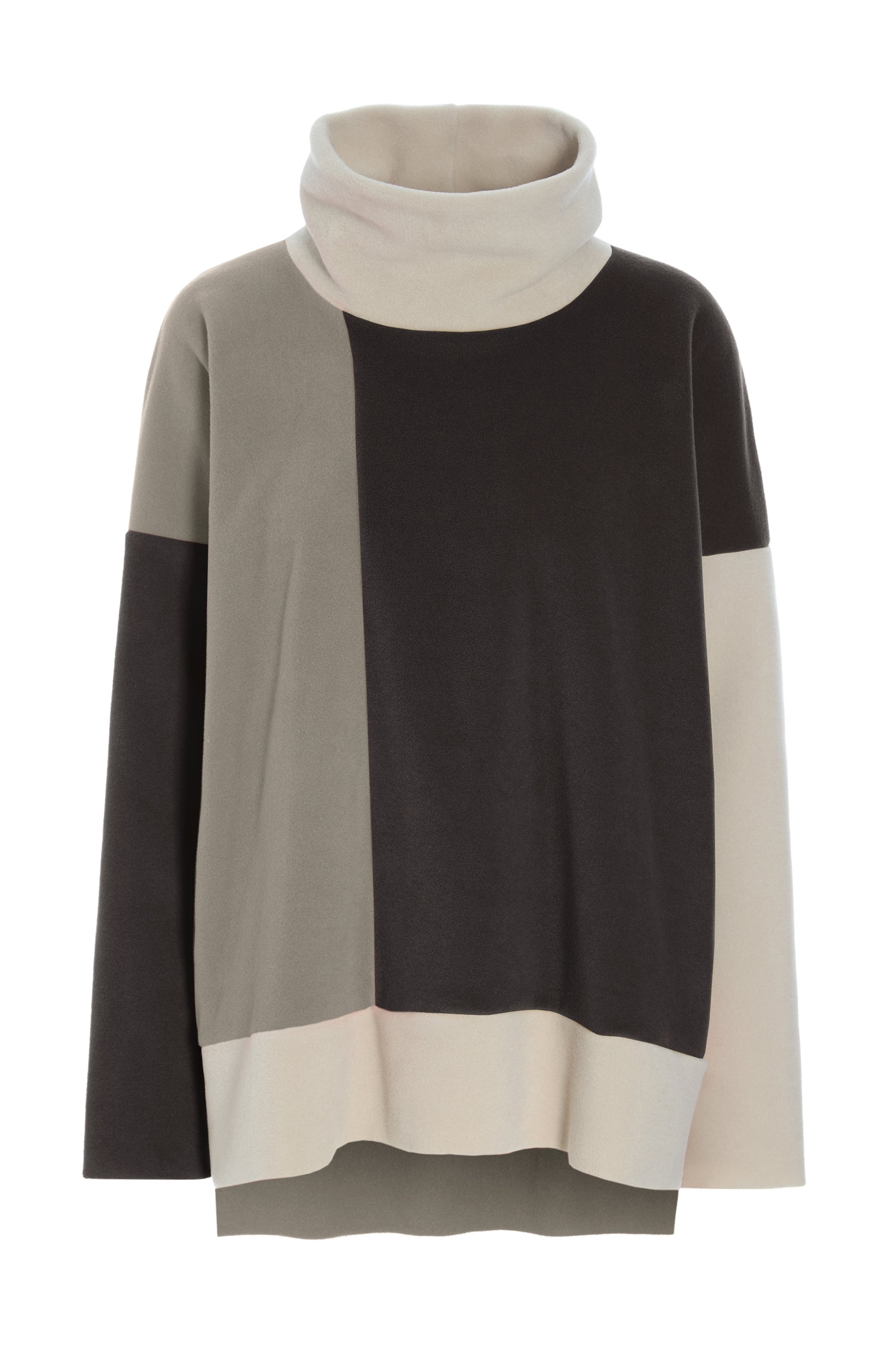 Multicolored box-shaped sweater with high neck. The sweater is longer in the back and has slits up the sides. As part of our PATCH line, this sweater comes in different combinations of our classic, soft colors.