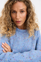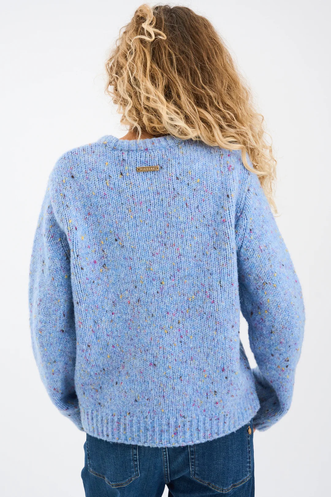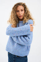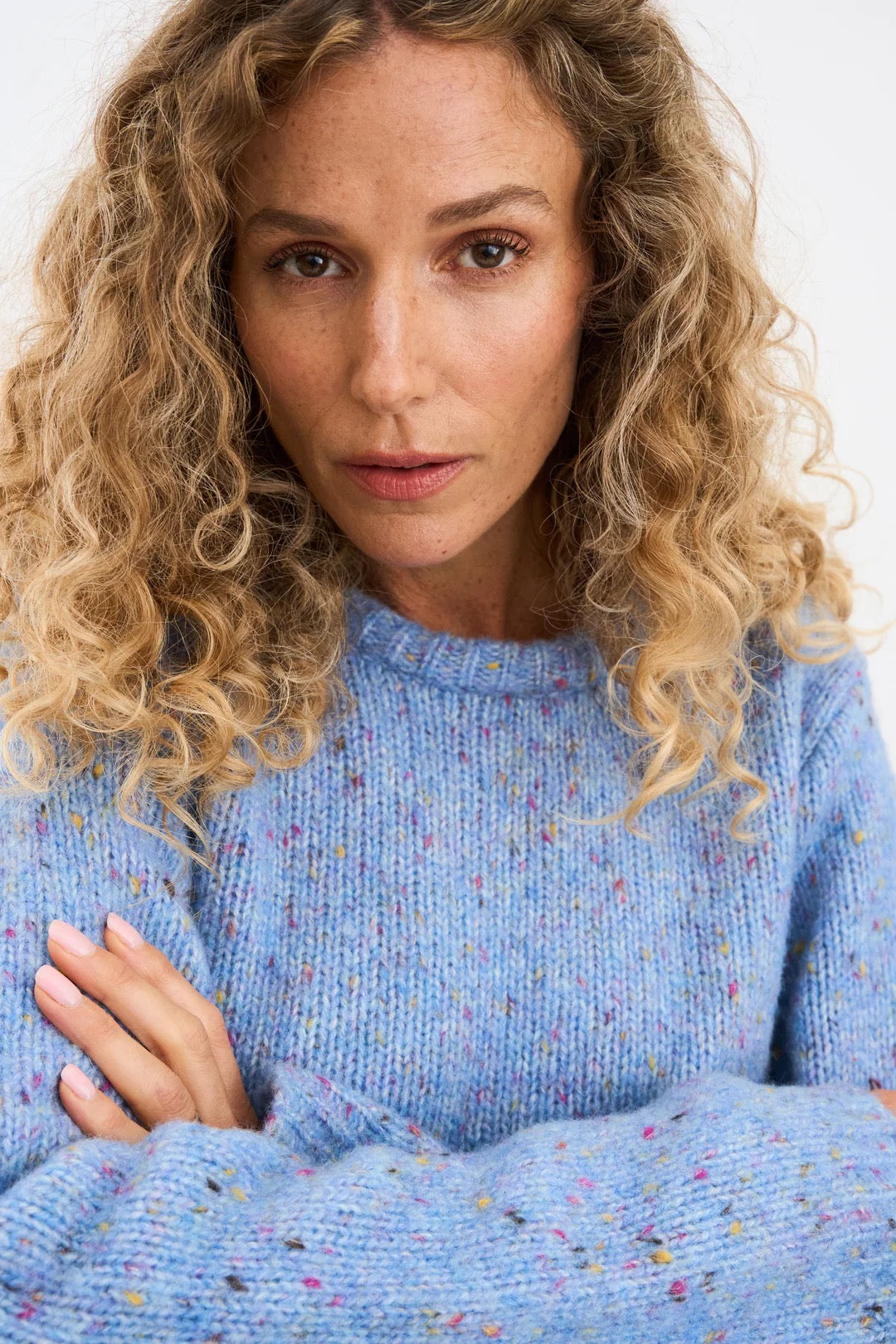 The Holly Pullover Knit blends timeless simplicity with a refined, tactile texture. Crafted from a speckled wool blend, this crew-neck style features a softly structured silhouette with ribbed trims and a clean finish