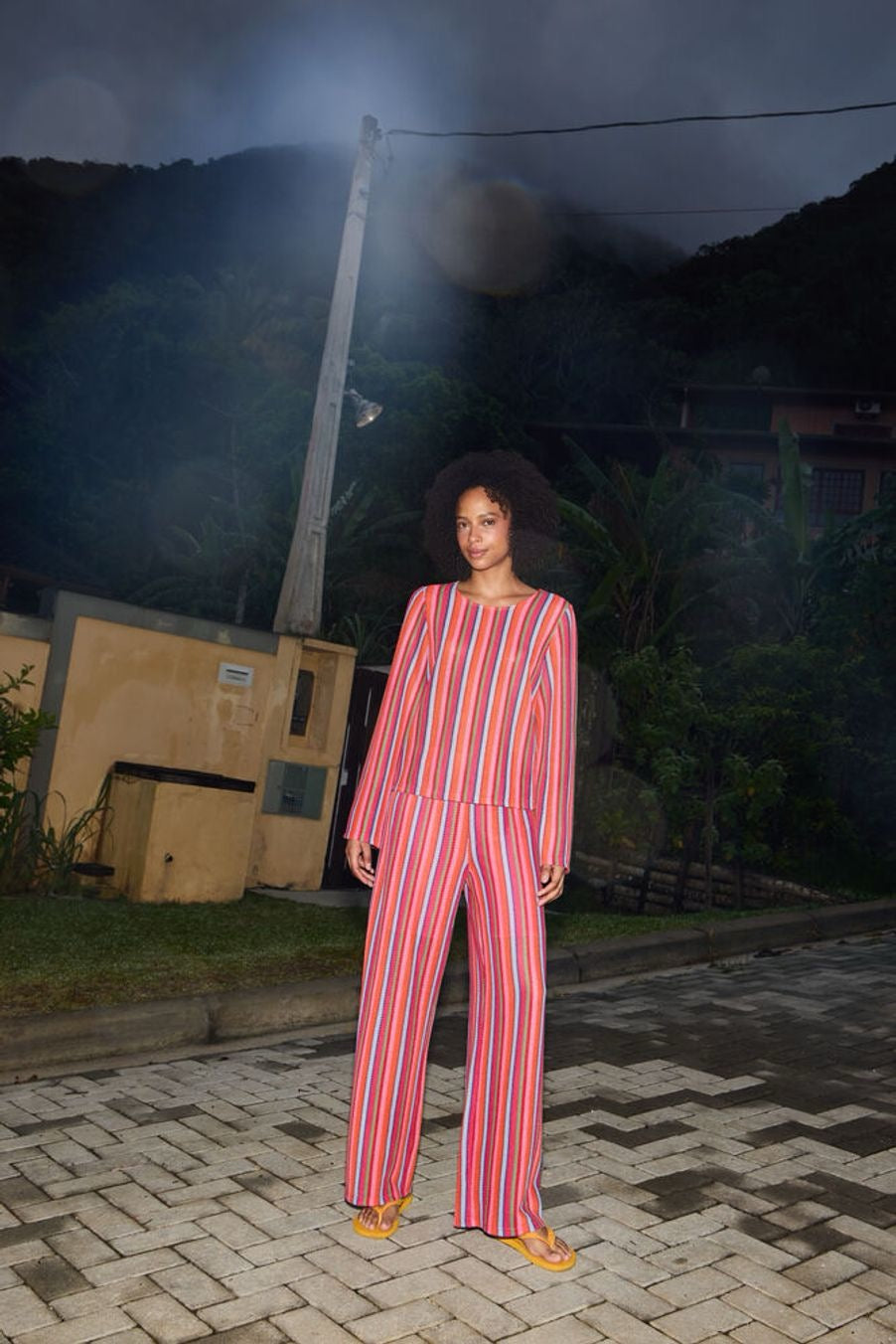 Vibrant stripe trousers which are relaxed and comfy.