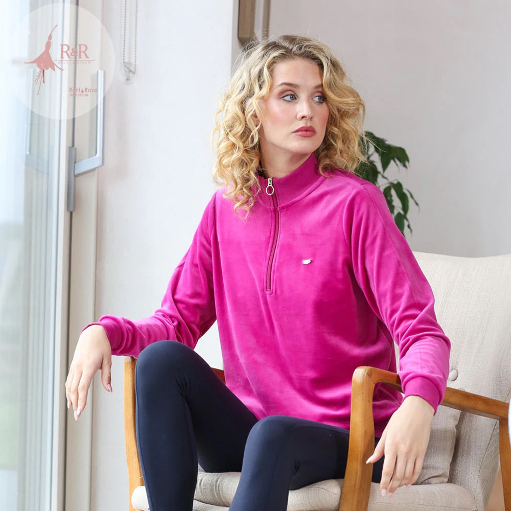 Amazing Magenta colour Half Zip from Relax and Renew. The Half Zip is stylish, sleek and definitely you. Perfect for evening walks or coffee dates with friends.