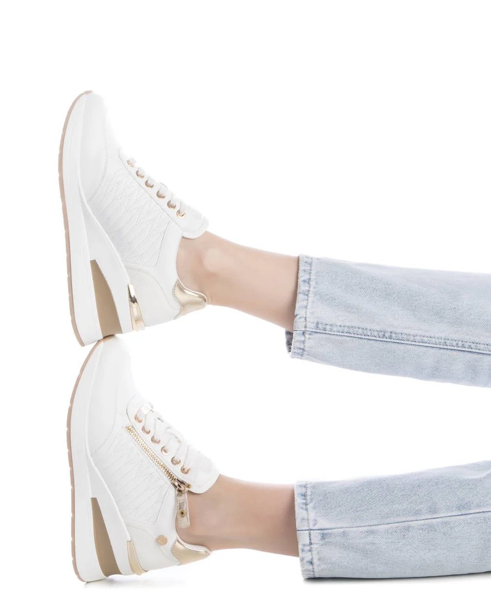 Women's trainers from Xti. Made of material that imitates leather. With side zip closure and adjustable laces for greater comfort. Metallic details to elevate your summer look. Non-slip rubber sole. With removable insole. This model has been certified vegan by the worldwide organisation PETA (Animal Rights Organisation).