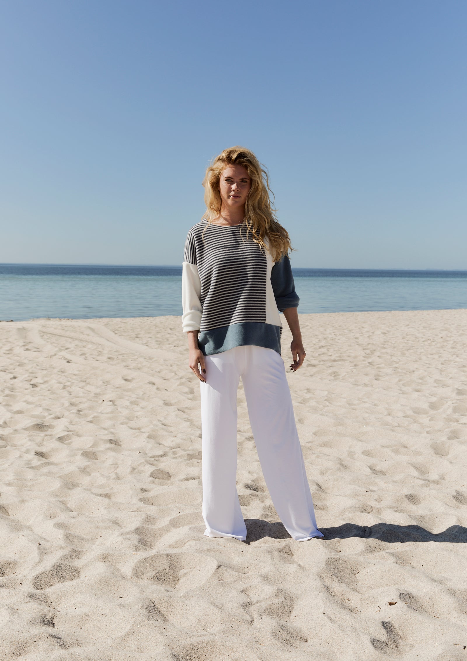 Henriette Steffensen dusty blue/off white/blue stripe Patch Top - 1407