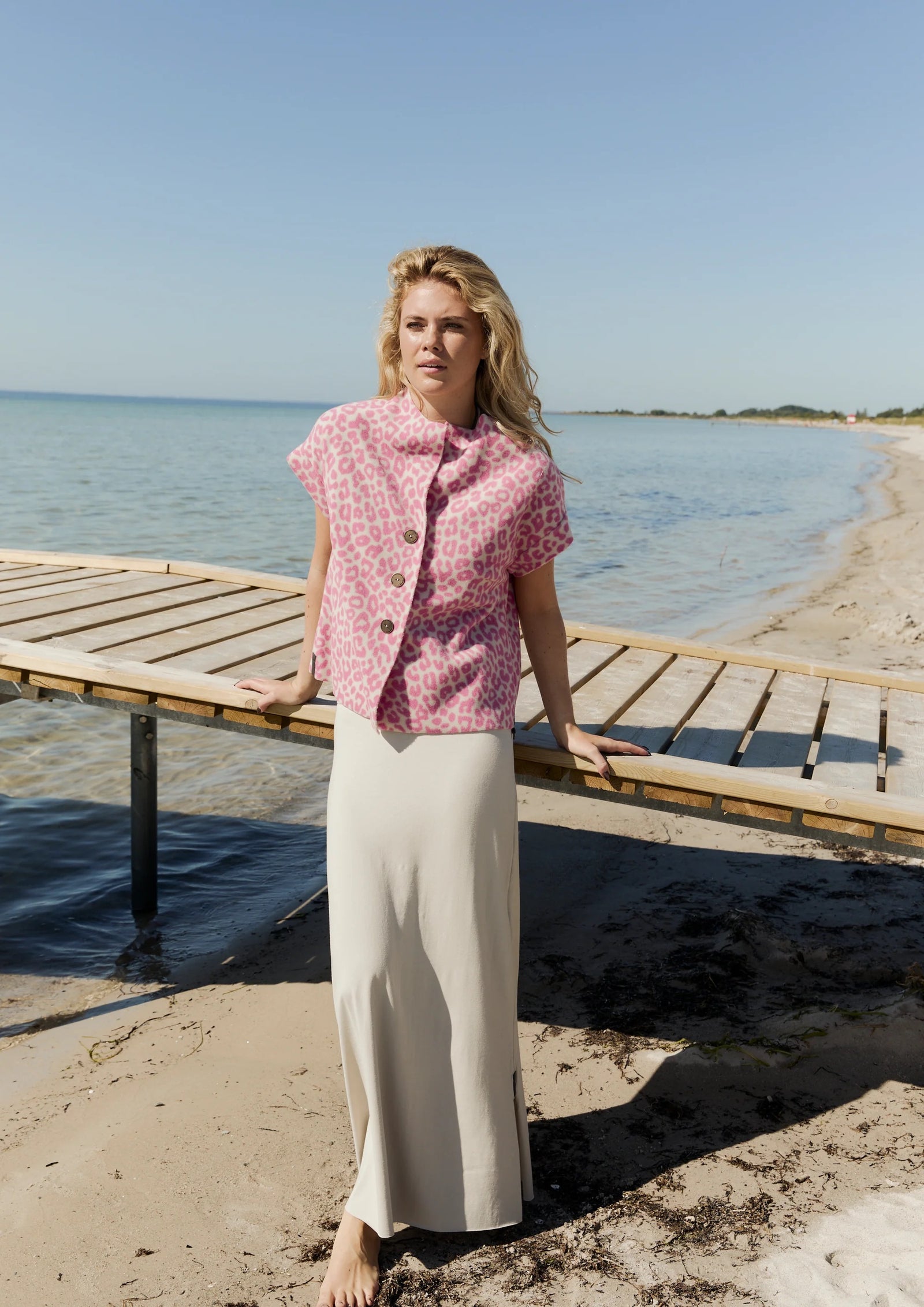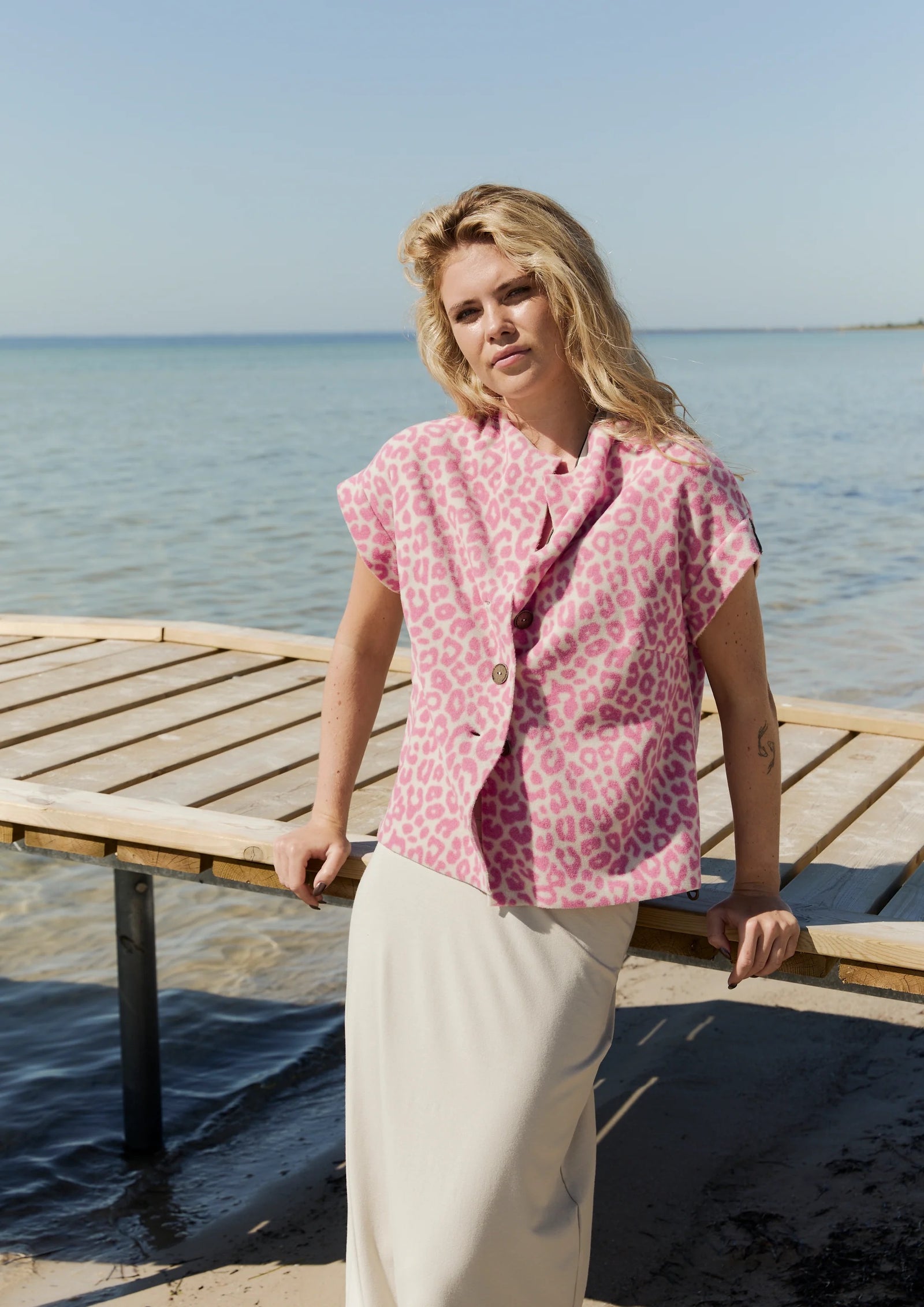 This soft vest is perfect for in-between seasons to keep warm. Wear it over a nice shirt and close it with a belt, for a more feminine look. You can choose between different colors and the boxy shape makes this vest suitable for both casual and everyday wear.