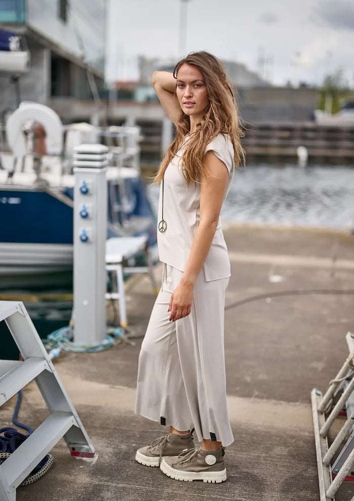 Designers favorite! Casual jersey trousers with wide legs, side pockets, and soft rubberband in waist. Enjoy the soft feeling of the jersey, total relaxed style.