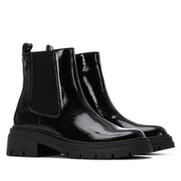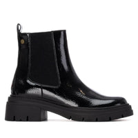 Women's ankle boot from the Xti brand. Made of high-quality patent leather, with a Chelsea-style design that offers comfort and timeless style. This model features a 5cm flat sole, providing a comfortable height without sacrificing comfort. The interior zipper makes it easy to adjust and put on the ankle boot, making this model a practical and versatile option. Perfect for those looking for an elegant and functional ankle boot, ideal for combining with casual or more sophisticated looks. In addition, its non-slip sole guarantees safety and stability with every step. Removable insole. This model has obtained vegan certification from the world organization PETA (Animal Rights Organization).