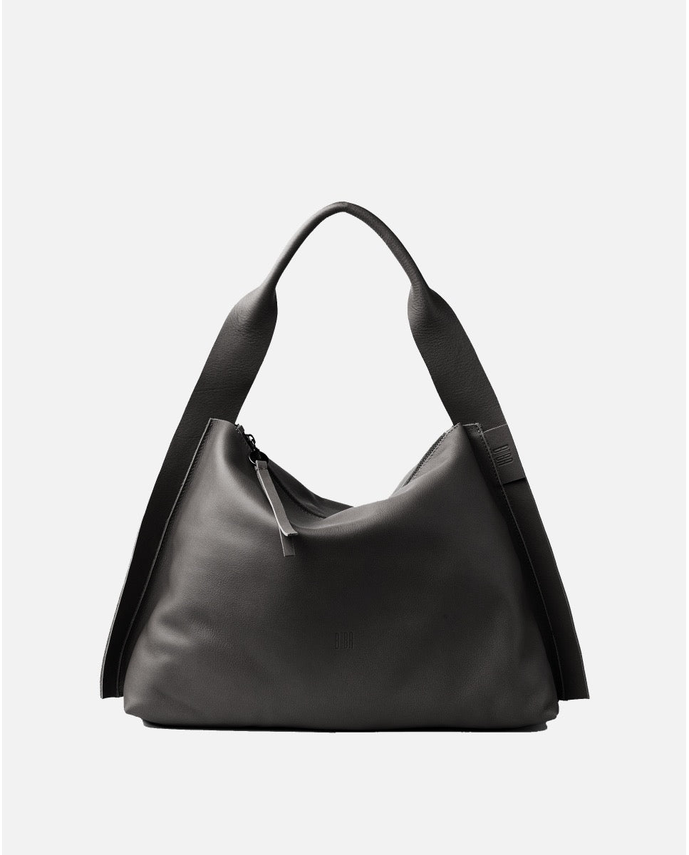 Light weighted cowhide hobo. Zipper closure. Internal pocket. Key ring anchored to the inside of the bag. No lining.