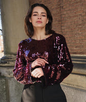Glittering top decorated with sequins with flared sleeves.