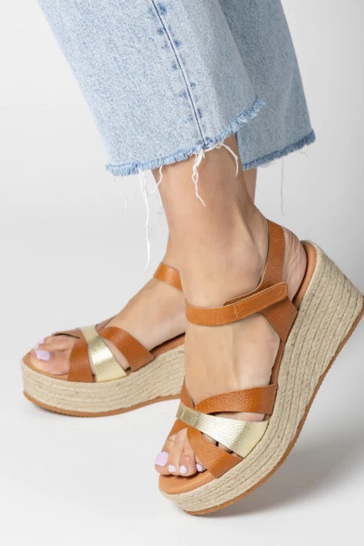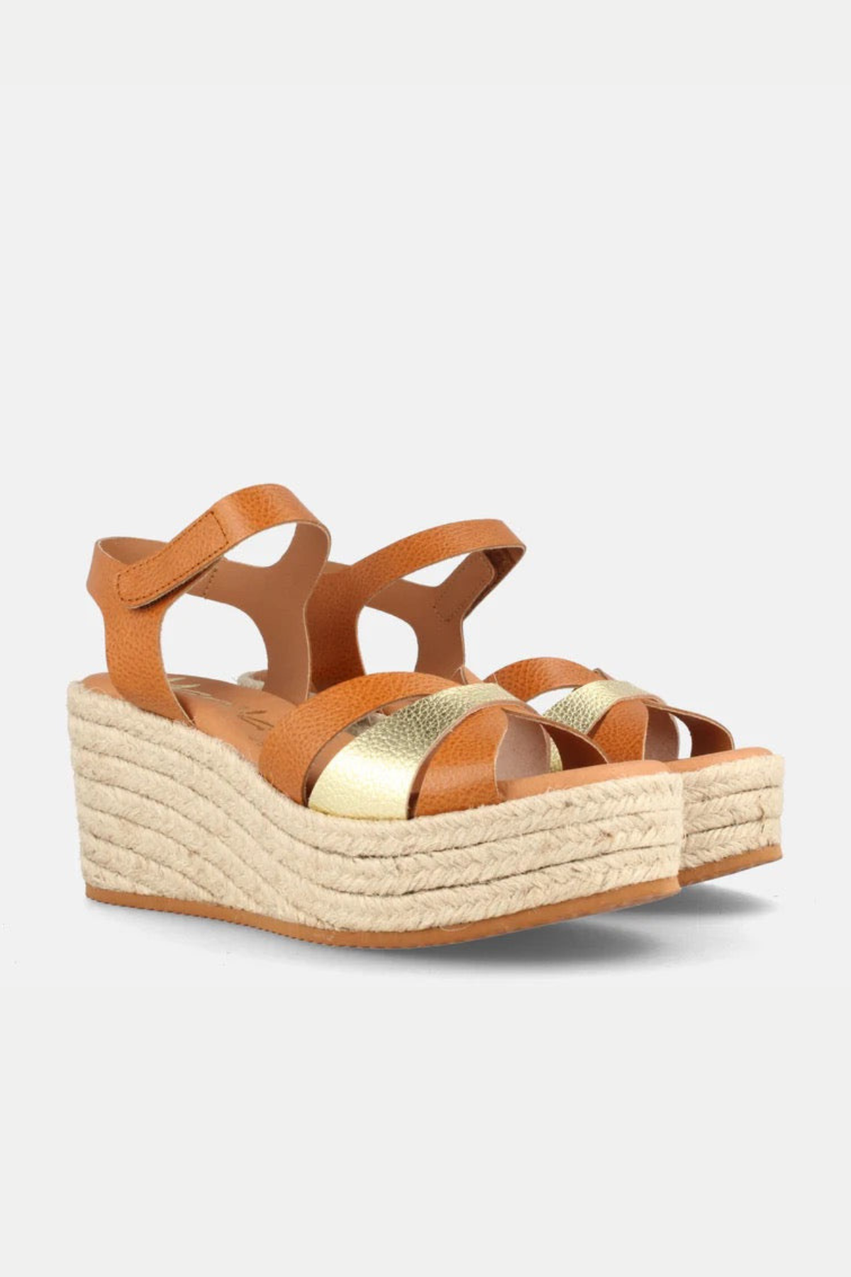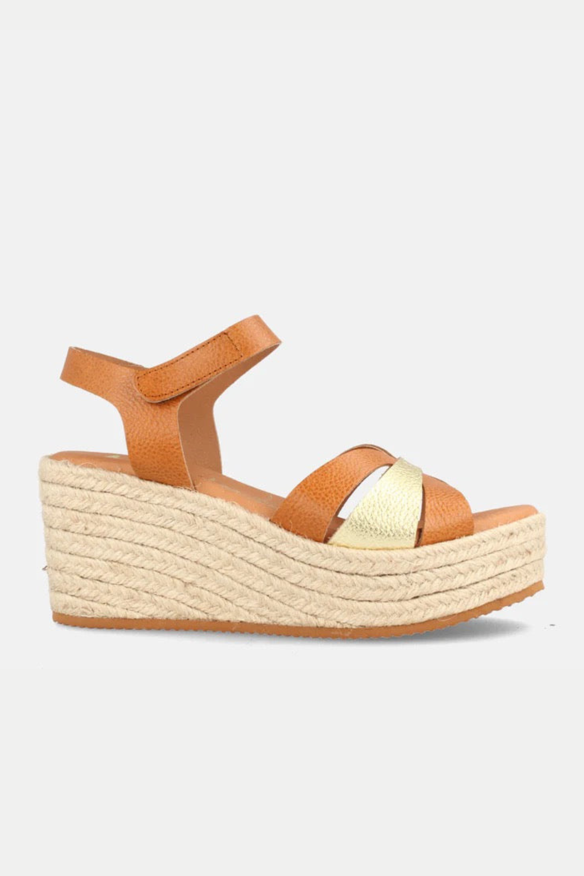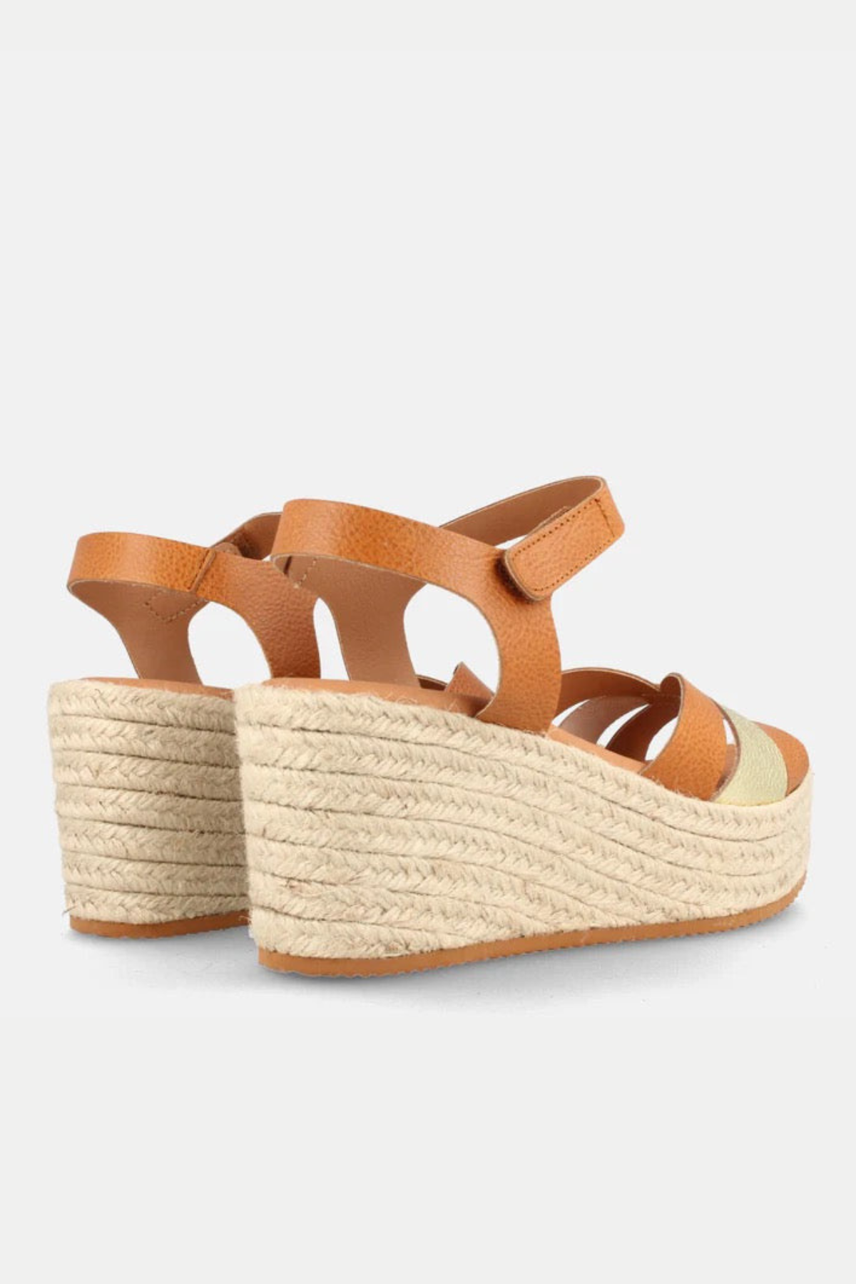 Discover the perfect sandal! This women's leather sandal with jute floor is the most desired model of the summer. They are made of honey and platinum-colored cowhide leather, giving a sophisticated look to your feet.